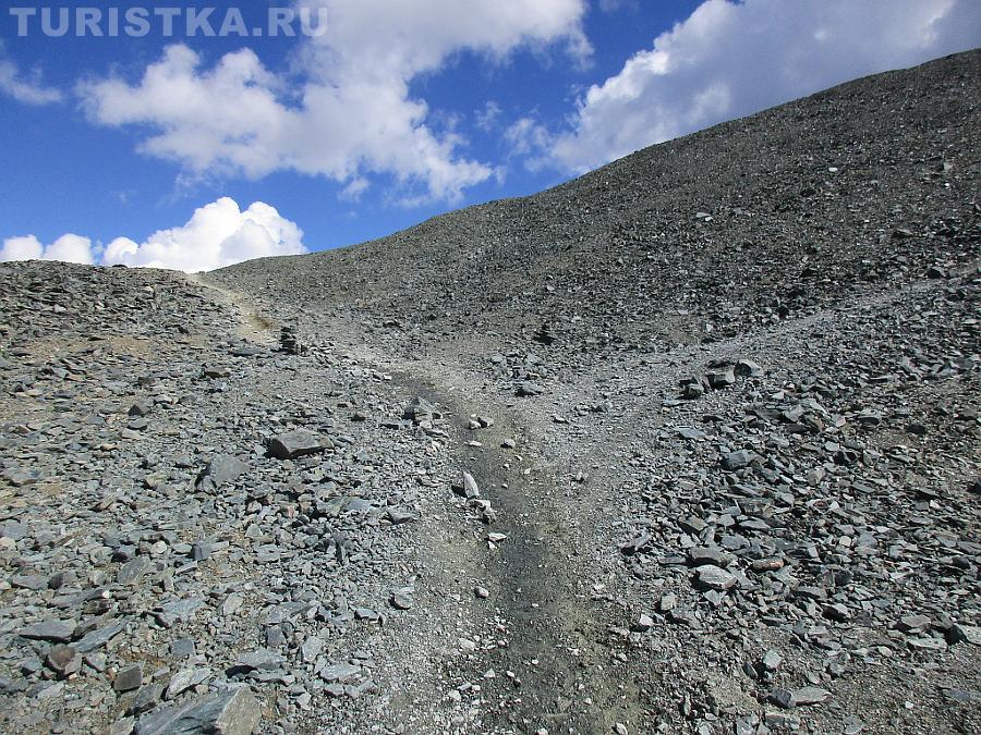 Высота перевала 3060 м. Категория сложности - 1А, характер препятствий осыпной.
