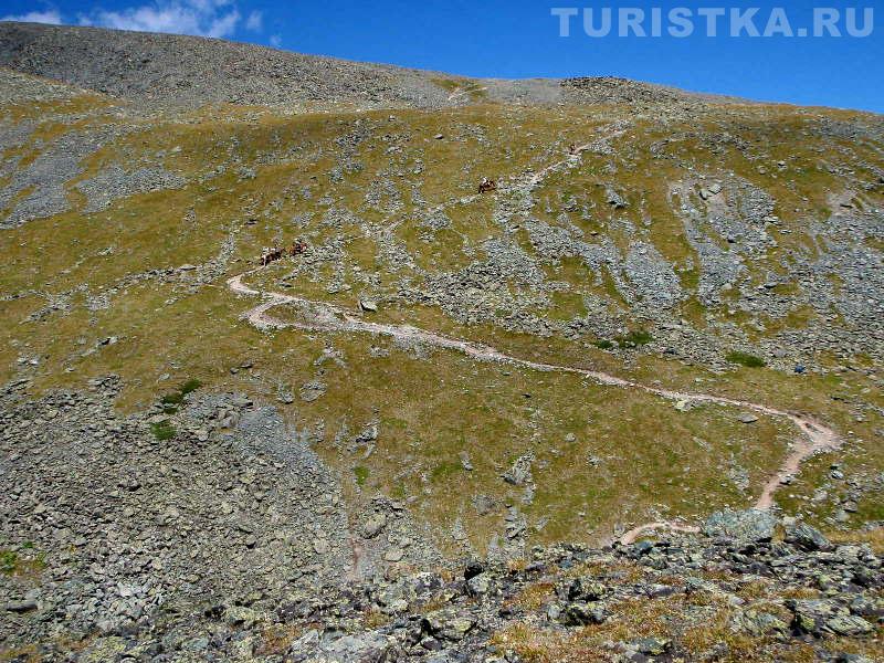 От Тюнгура к перевалу подъем более пологий, чем от Ак-Кема.