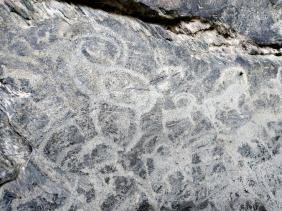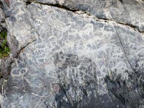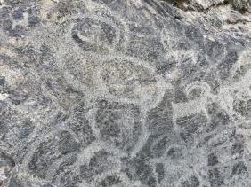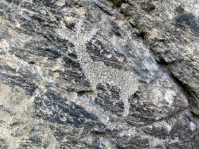Петроглифов, относящихся к скифскому времени очень много. Изображения животных выбиты точечной техникой. На скале можно увидеть маралов, козлов, косуль. Некоторые из животных, поражены метательным оружием.