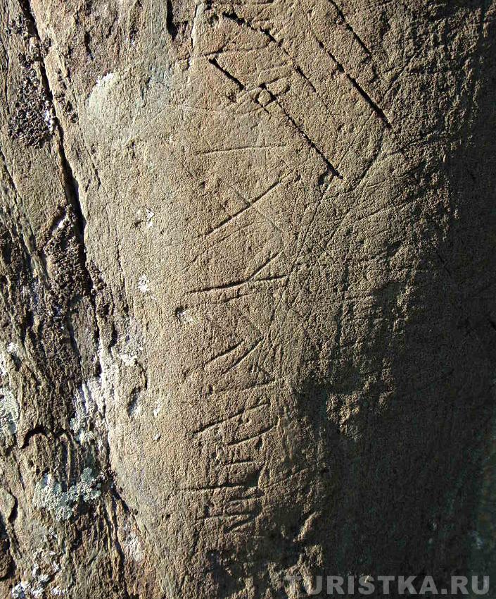 Здесь же, на территории памятника, находятся 30 строк уникальных рунических надписей — и это самое большое скопление рунического текста в России. Их относят к IX-X вв. Понять, о чем же эти надписи помогут переводы, сделанные И. Л. Кызласовым, вот некоторые из них: