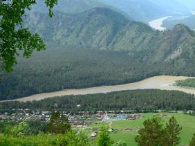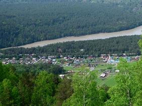 Село Турбаза Катунь хорошо видно с двух обзорных точек: