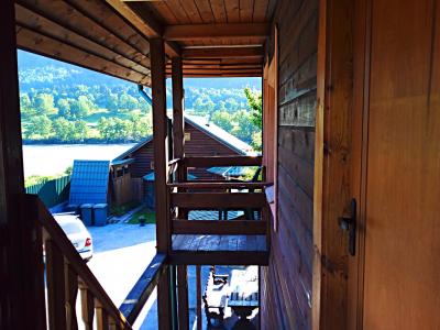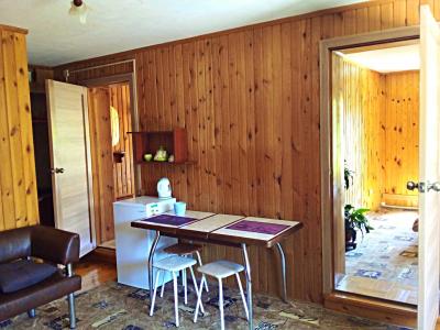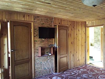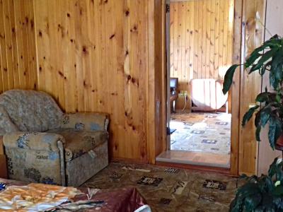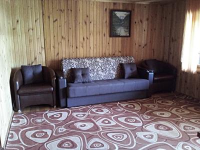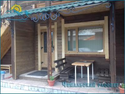 Небольшой дом из оцилиндрованного кедра, с большой верандой с видом на Катунь. В домике спальня с двуспальной кроватью, креслом, спутниковым ТВ. Небольшая детская с мягким диваном, кухня с холодильником, чайником, плиткой и всей необходимой посудой. Санузел с душевой кабиной, горячей, холодной водой. Количество проживающих 2 человека.