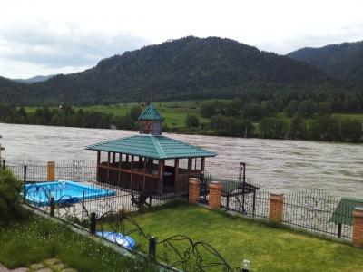 Усадьба «Чемальский рассвет» приглашает вас отдохнуть и провести отпуск у реки Катунь в Горном Алтае. Дом с бассейном на берегу реки Катунь в центре села Чемал с панорамным видом величественных гор и реки отлично подходит для семейного отдыха. Имеется песчаный пляж, где в жаркие дни наши гости могут искупаться и позагорать, а рыбаки-любители закинуть блесну на хариуса. У нас