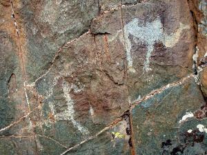 В конце прошлого столетия на скале Кызыл-Тас, располагающейся в Бертекской долине плато Укок, археологи обнаружили комплекс наскальных изображений, состоящий из зафиксированных на данный момент 120 фигур. Хронологически эти петроглифы относят к нескольким эпохам, самой древней из которых является каменный век. Большая же часть изображений — это выполненные точечной техникой фигуры зверей и антропоморфные изображения, датируемые бронзовым веком и ранним железным веком.