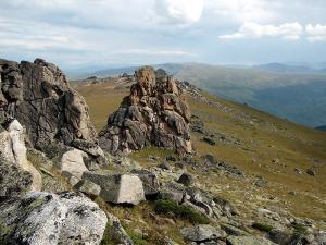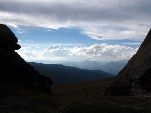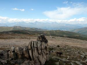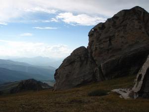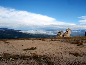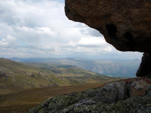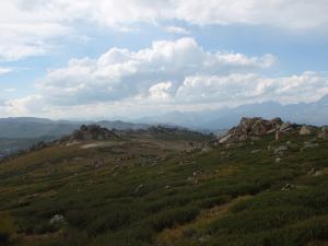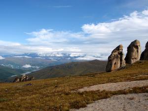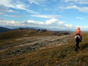 Погода здесь, как и везде в горах, непредсказуема. Проходящее мимо по своим делам облако легко может обеспечить вам двухчасовое пребывание в плотном тумане с очень ограниченными возможностями видимости и фотосъемки. Но, чем еще замечательно это место, в хорошую погоду с высоты плато открываются завораживающие виды сразу на несколько хребтов и вершин Горного Алтая из числа "самых-самых". На западе Катунский хребет и красавица-Белуха, на северо-востоке Южно-Чуйский хребет, гора Иикту, на юго-восток открывается вид на горный узел Табын-Богдо-Ола на границе с Монголией и Китаем, вершину Найрамдал.