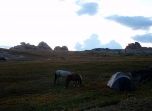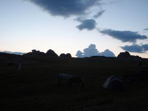 Некоторые гиды говорят, что и в настоящее время местные жители предпочитают избегать это место, но это сомнительно. В прошлом веке плато использовалось алтайскими чабанами как летнее пастбище, да и сейчас здесь часто можно встретить табун лошадей, пасущихся летом в горах без особого присмотра. В 2012 году, когда Туристке.Ру довелось впервые побывать здесь в числе участников конного похода по плато Укок, мы останавливались на Чокпортасе на ночевку, и со слов наших проводников жителей села Джазатор это не редкость, поскольку место для стоянки удобное. За скалами можно укрыться от ветра, но один из минусов тут совсем нет дров, поэтому остается либо довольствоваться газом, либо прихватить с собой немного дров для костра с предыдущей остановки где-нибудь пониже, на уровне леса. Высота тоже дает о себе знать, и августовское утро вполне может встретить вас снегом на палатках.