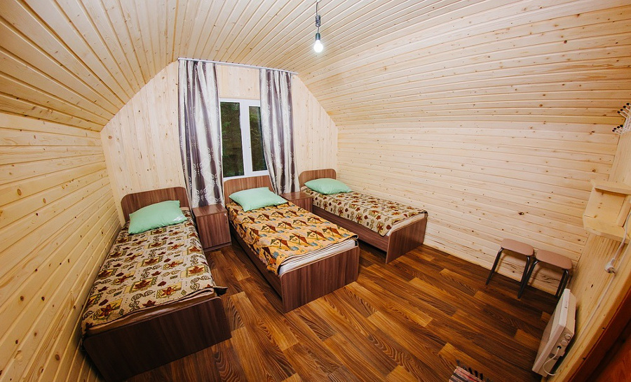 - Дом № 19,20,21 (1+1+1) - 6000 р. Три кровати шириной 80 см. каждая, 2 прикроватных тумбочки, стеллаж, отопление. В санузле: душ, унитаз, раковина, горячая вода, зеркало, три больших полотенца и одно для ног.