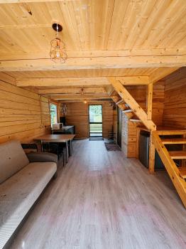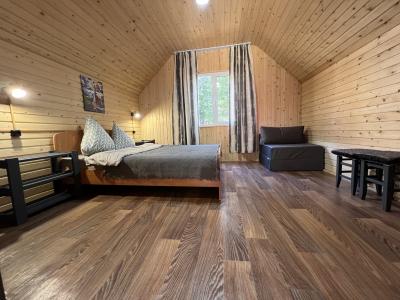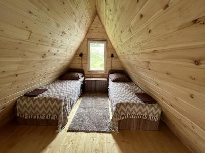 Двухэтажный дом, состоящий из 3 комнат, возможно размещение до 6 человек, теплый пол в каждой комнате.