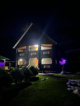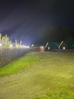 В домике две 1-местные кровати и стол. Веранда на верхнем и нижнем этажах, там стоят столы и лавочки, здесь можно приготовить себе еду. Есть платное дополнительное место. На территории благоустроенные чистые санблоки, душевые, раковины.