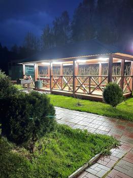 беседка для тренингов на Алтае и корпоративов на 25 человек с холодильником и розетками;