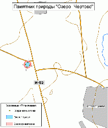 Расположено озера рядом с трассой М-52 (в 70 метрах от неё) на перегоне Барнаул-Новосибирск возле поворота на село Новоёловка. Площадь водоёма составляет около 2,2 га. Прибрежная линия не изобилует изрезанным рельефом, берега достаточно пологие и весьма удобные для подхода к воде, что однозначно можно отнести к плюсам этого водного объекта. Стоит отметить высокую степень чистоты озера, что выгодно отличает Чёртово озеро от ряда других водоёмов региона. Отдыхающим на нём необходимо знать и учитывать, что дно достаточно резко уходит вглубь, что связано с крутизной донного ландшафта котловины, в которой и возникло озеро. Поэтому не слишком опытным пловцам следует проявлять осторожность при купании в нём. Южный и юго-западный берег водоёма оконтуриваются небольшим лесочком, весьма живописно разнообразящим окружающий ландшафт.
