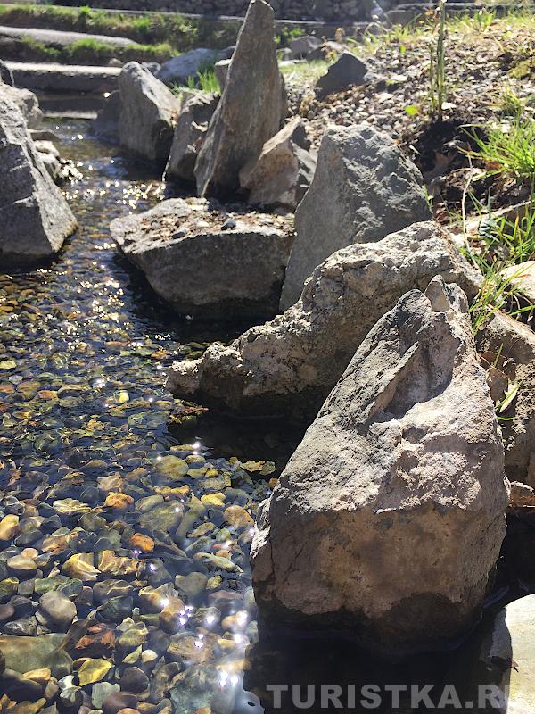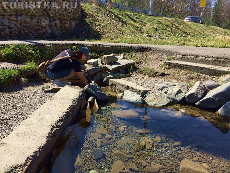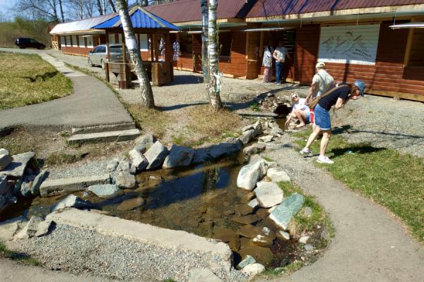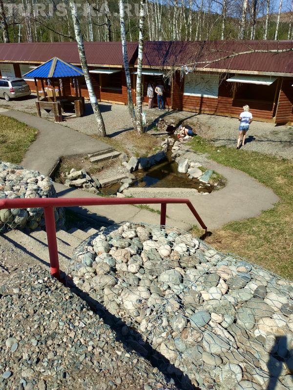 Рядом с источником располагается сувенирный ряд. Если вы забыли бутылку для воды, здесь вы можете ее приобрести. В отдалении от самого источника оборудованы туалеты и установлен бак для мусора.