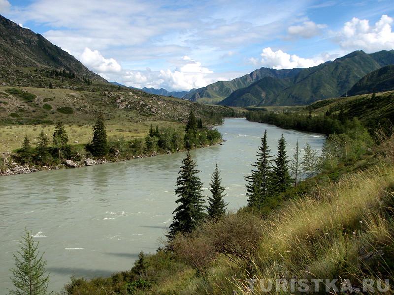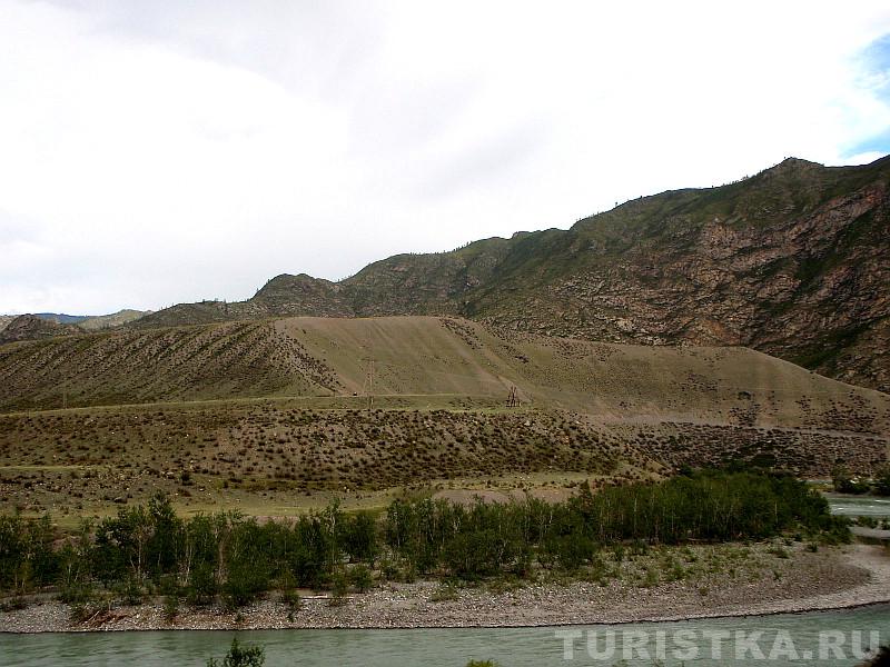 Учеными высказывается несколько причин возникновения Катунских террас. Одна из них многократные мощнейшие потоки воды из ледниковых озер. В древние времена объем стока с ледников был более чем в 30 раз больше настоящего. Вода скапливалась в огромных озерах на месте Чуйской и Курайской впадин. Сброс происходил и постепенно, и в очень короткий срок, когда вода размывала морену, природную плотину, и прорывалась в долину. Поток имел огромную силу и нес с собой камни, песок, глину из разрушенной морены. Вода перетирала камни, огромные валуны тащила с собой. Глубина паводков было до 500 метров. Вполне возможно, что небольшая волна, высотой в пол-метра в результате гигантского сброса докатывалась и до Северного Ледовитого океана!