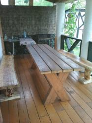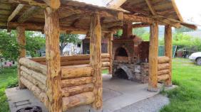 Открытая терраса (мангал, водопровод, столы, лавки).