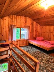 Два однокомнатных домика у ручья, в каждом душ и туалет.