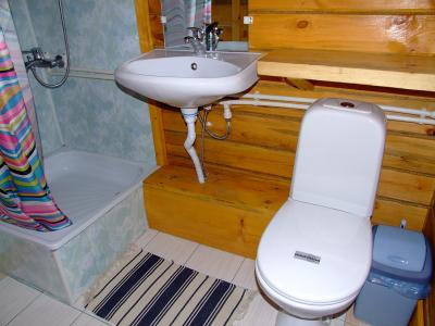 Санузел и душ расположены рядом на территории в теплом помещении.