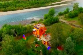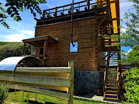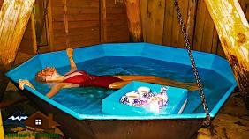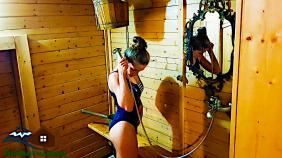- №1. Баня с бассейном. Первый этаж бассейн, второй этаж баня, на третьем этаже благоустроенный номер. Терраса над номером с видом на реку. Можно арендовать весь комплекс, а можно по-отдельности: предусмотрены отдельные входы в баню и на 3 этаж. Из парилки можно скатиться с горки в бассейн с холодной водой. Цена договорная