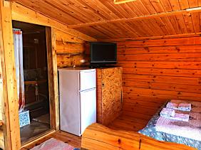 Все домики оснащены постельным бельем, полотенцем, ТВ, холодильником, посудой, чайником, а также у каждого домика своя зона для отдыха.