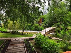 Гостевые дома расположены в парковой зоне на берегу живописной горной реки Чарыш, которая хорошо прогревается в летнее время.
