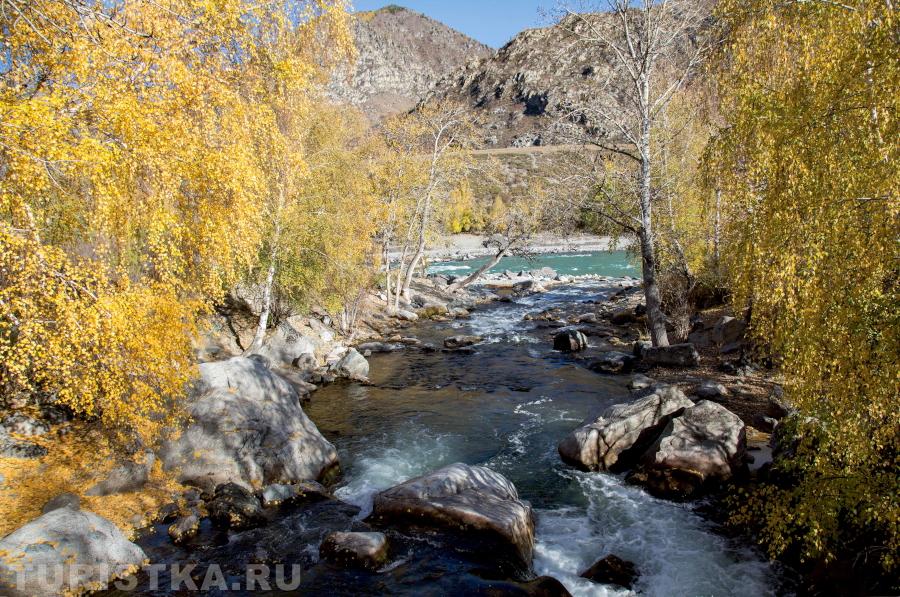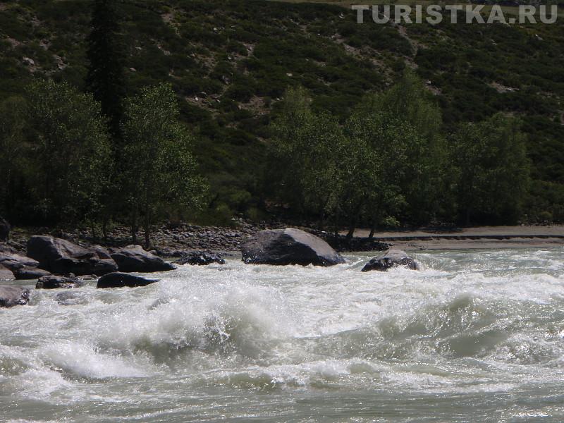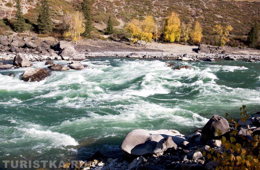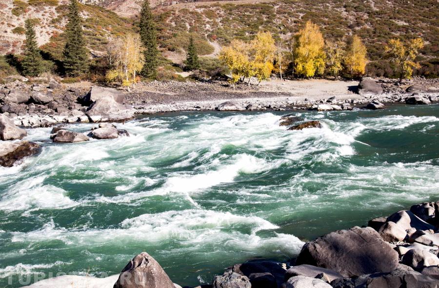 Порог Ильгумень – один из немногих на участке Средней Катуни, который доступен для наблюдения. После Куюса в список порогов, которые может увидеть автотурист, добавляются Еландинский, Тельдекпень I-II.