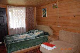 Двухкомнатный домик (спальня и кухня-прихожая), санузел с душем. В спальне две двуспальные кровати, тумбочки и спутниковое TV. Дополнительное место диван (по требованию). На кухне имеется холодильник, плита, горячая и холодная вода, необходимая посуда.