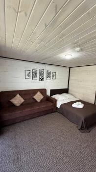 - Кровать 2-спальная (1,4*2,0 м), доп. место - раскладная кровать (по запросу, 1000 руб/сутки)