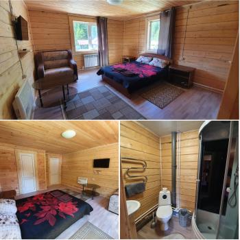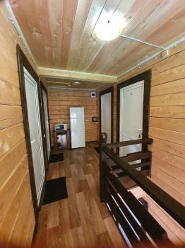 Без кухни, в холлах 2го и 3го этажах стоят холодильники, микроволновки и чайники. ТВ, посуда в каждой комнате.