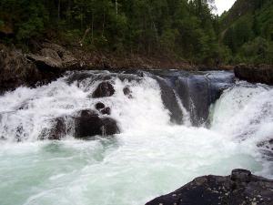 Ниже по течению после впадения притока Антонов Коргон на реке Коргон находится еще один порог, являющийся Памятником Природы водопад Аврора.
