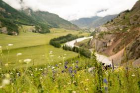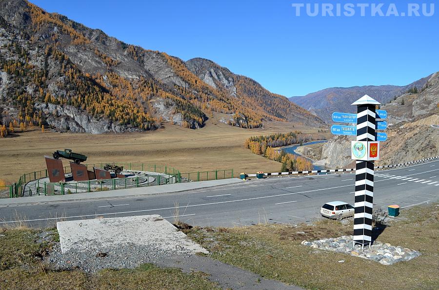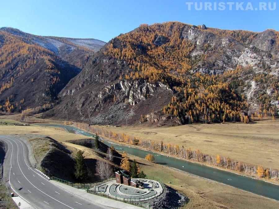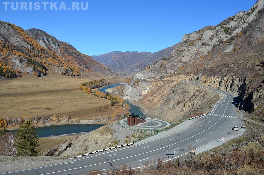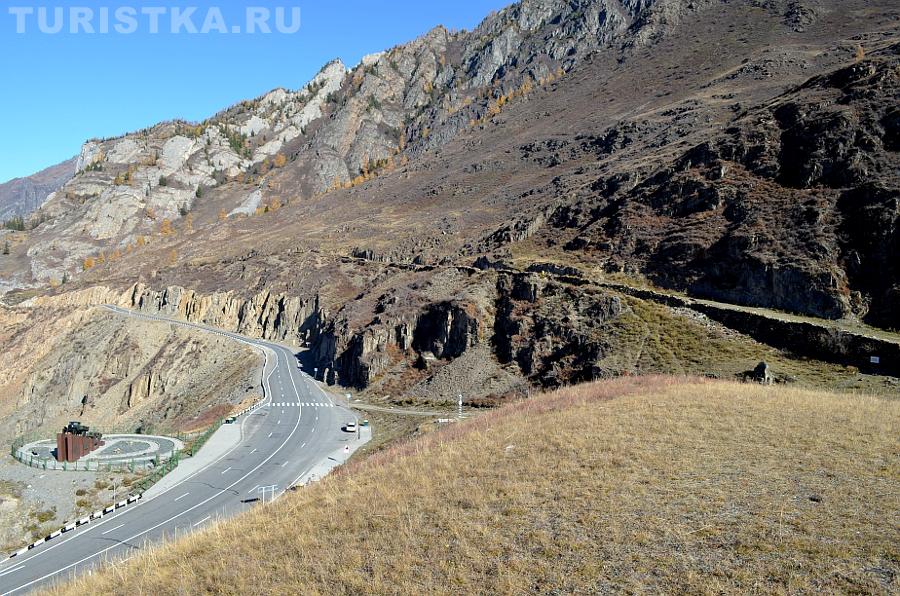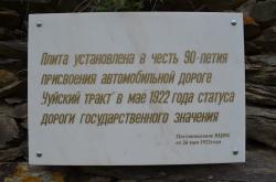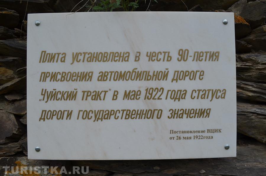 Если подняться в гору по асфальтированной дорожке, то можно увидеть участок старого Чуйского тракта и пройтись по нему, а если вы на джипе, то проехать. На каменной кладке, укреплявшей старую дорогу, прикреплена плита в память 90-летия присвоения Чуйскому тракту статуса дороги государственного значения.
