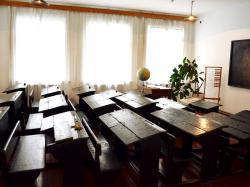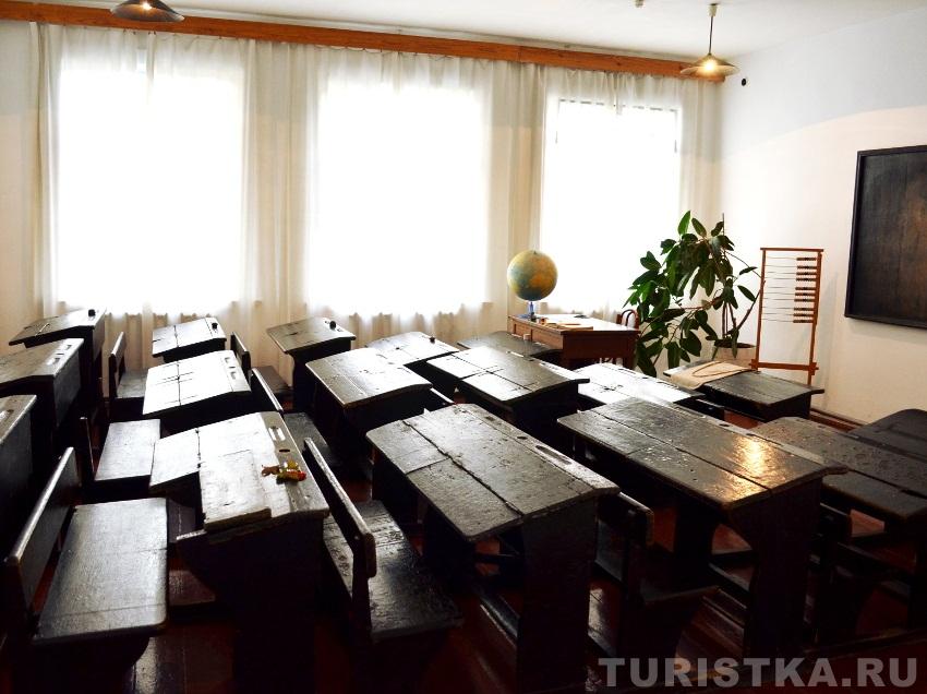 В 1928 г. была построена Сростинская школа, в которой В. Шукшин окончил 7 классов, а затем, вернувшись из армии, преподавал. С 1989 г. деревянное здание Сростинской школы превратилось в настоящий музей, хранящий множество экспонатов, связанных с историей села, а также жизнью и творчеством писателя. Состав основного музейного фонда включает более 15 тысяч предметов: уникальный мемориальный фонд В. М. Шукшина, фонд его троюродного брата И. П. Попова и сестры Н. М. Зиновьевой, тематические фонды и коллекции истории села, коллекция произведений живописи и иллюстрации к произведениям писателя. В музее 4 зала, посвященных В. М. Шукшину: "Мир Шукшина - Земля и люди", "Становление. 1954-1969 гг.", "Зрелость. 1970-1974 гг.", "Творческое наследие писателя", а также школьный класс и выставочный зал.
