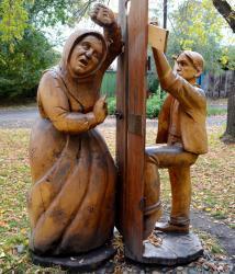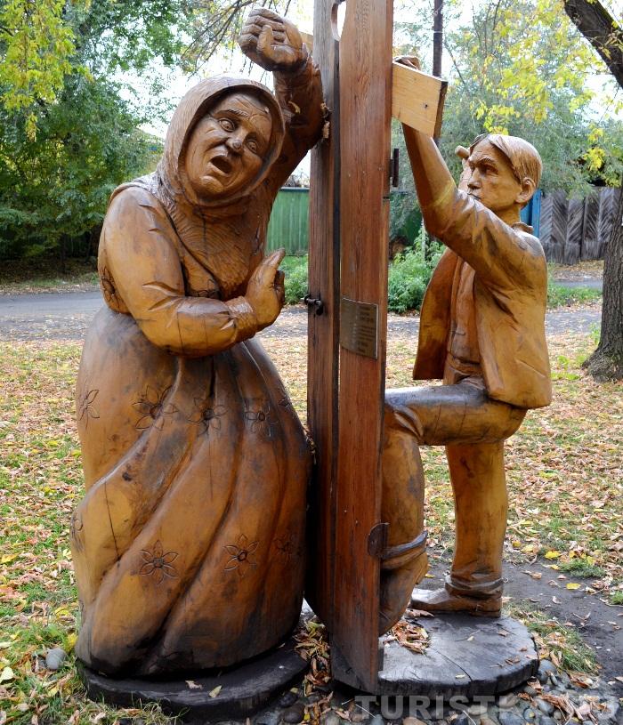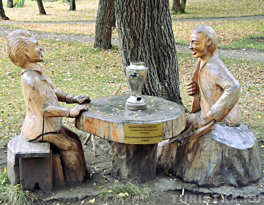 Напротив основного здания музея В. М. Шукшина находится сквер, в котором можно увидеть 19 деревянных скульптур, словно сошедших со страниц шукшинских произведений. Скульптуры были подарены селу мастерами после фестиваля "Чудики", прошедшего в 2011 году.