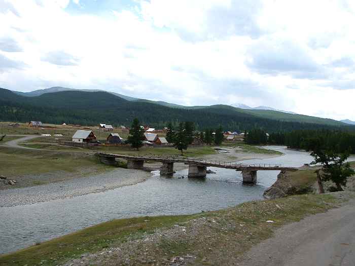 Собственно, въезд в Улаган происходит по мосту через Башкаус. На въезде в село расположены две АЗС последние на трассе Акташ-Балыкча.