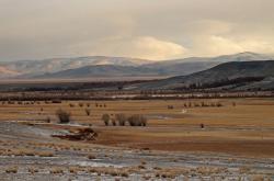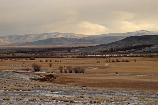 Чуйская степь пестрит всеми оттенками желто-красных цветов, ведь это самое сухое место в России — среднегодовое количество осадков не превышает 150 мм. Весной и летом по степи проносятся пыльные бури, поэтому лучше всего в этих местах осенью, когда царит солнечная и безветренная погода. Эта степь не только самая засушливая, но и самая холодная в Горном Алтае, температура здесь порой опускается до -60°C. В котловине широкое развитие получили процессы, формирующие бугры пучения, наледи, морозобойные трещины и пр. Объем наледей в бассейне реки Чуи достигает 150 млн. м2. Конечно же, растительность здесь совсем бедная, только иногда кое-где просматриваются колючие кустарники и кустики полыни. Животный мир степи своеобразен, можно встретить многочисленные виды грызунов, кота-манула, степную лисицу корсак, зайцеобразных, уток, журавлей, жаворонков, а также хищных птиц (черных грифов и балобанов).