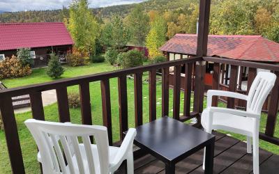 Номер «Стандарт» располагается на первом этаже двухэтажного дома. В номере есть двуспальная кровать и кресло-кровать, дровяная печь-камин, телевизор, обеденная зона, холодильник, санузел с душем, и уютная терраса с видом на территорию и бассейн.