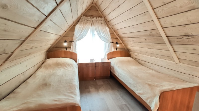 Два двухместных номера расположены в уютном в домике из калиброванного бруса.