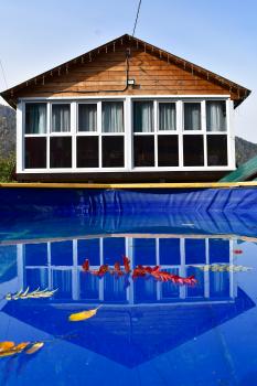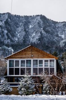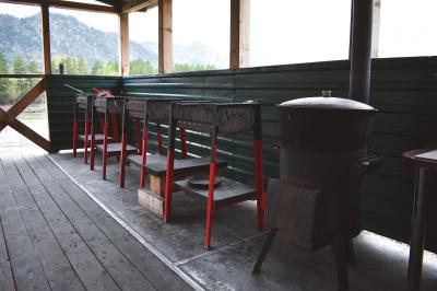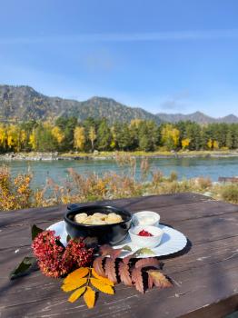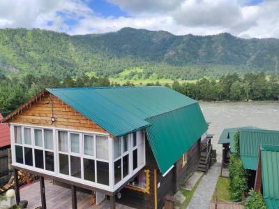 Панорамные окна на территорию базы и на реку Катунь (боковой вид).