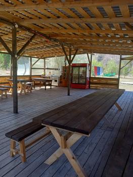 Питание самостоятельное: На территории есть 2 летние кухни, со всем необходимым: плиты, посуда, холодильники, столы. казан...