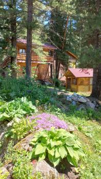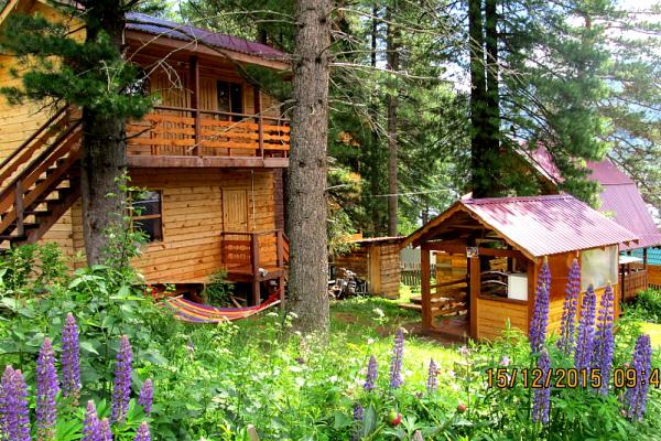 Всего 50 метров до Телецкого озера! "Кедровый дворик" находится на пригорке, с прекрасным видом на озеро. На территории стоят вековые кедры, ветви касаются балкона второго этажа домика, где расположены два 2-хместных номера.