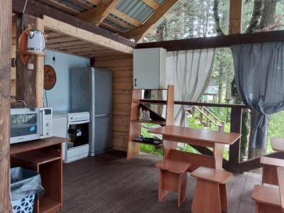 В доме есть туалет, душ, горячая вода. Открытая кухня- беседка с видом на озеро. В кухне имеется холодильник, электрическая плита (с духовкой), микроволновка, водоснабжение, столовая посуда. На территории имеет мангальная зона, стоянка.