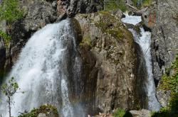 Водопад образует река Муехта, которая впадает в реку Муирта и дальше в Кубу. Потом Куба впадает в реку Чемал, а воды Чемала, пройдя через Чемальскую ГЭС, вливаются в Катунь. Вот какой путь проходит вода, стекая с хребта Иолго!