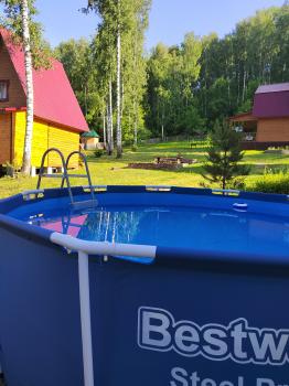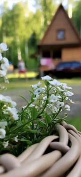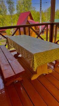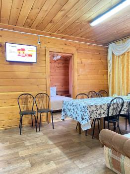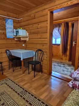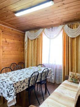 Дом полностью деревянный. Первый этаж дома кедровый, второй — пихтовый. Каждый этаж имеет свой хвойный запах! Благоустроенный, двухэтажный коттедж, на полу ковровые покрытия. На входе в дом располагается большая веранда со столом, скамейками. Напротив дома, находится крытая мангальная зона.