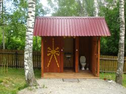 Находится на втором этаже утепленного дома. Вход на второй этаж по лестнице с улицы. Удобства на территории.