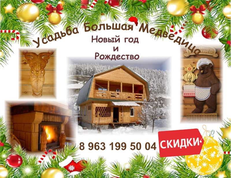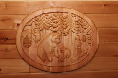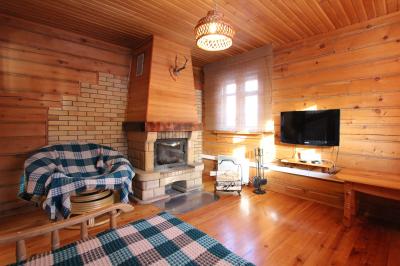 В доме: 4 изолированные спальни, санузел с душем, каминная комната, кухня-столовая, удивительные резные панно и медвежьи шкуры создают особую сказочную атмосферу,