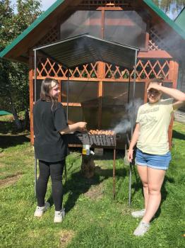 Возле дома просторная беседка с гамаком и большим столом, мангальная зона.