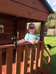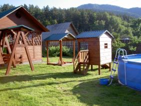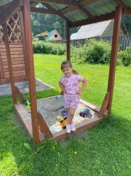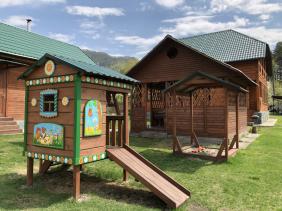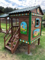 - детская площадка с домиком, песочницей и качелями
