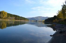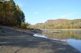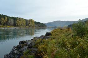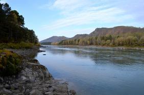 Река Катунь в районе села становится спокойнее. Русло широкое. Берега то с песчаными пляжами, то с каменными выходами. Противоположный от Соузги берег это невысокие покатые горы. Все настраивает на спокойный отдых.