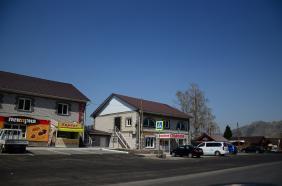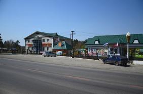 В селе много продуктовых магазинов, есть кафе, столовая, заправка.