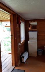 Кирпичная печь, кухонный шкаф с раковиной, 2 двуспальные кровати одна из которых находится на втором уровне, 1 односпальная кровать, столик, тумбочки, санузел, круглосуточное электричество. Есть возможность установки дополнительно 3х спальных мест.