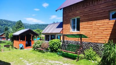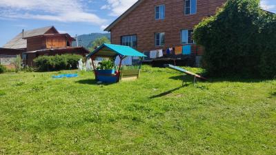 берегу Телецкого озера (в 70 м) в селе Иогач. Предлагаем тихий семейный отдых в Горном Алтае. Территория покрыта зелёной травкой, есть мангальная зона, игровая площадка для детей, песочница, качели, видеонаблюдение.
