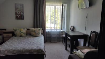 Вид на озеро, двуспальная и односпальная кровати, раскладное кресло, TV, Wi-Fi. Душ, туалет на этаже.